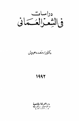بيانات النشر : الإسكندرية، مصر : دار المعرفة الجامعية، 1992مـ.