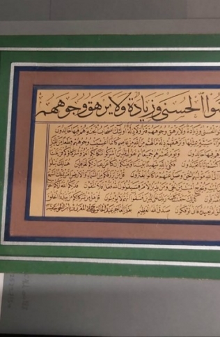 لوحة تحتوي على آيات قرآنية من سورة يونس من آية رقم 26 إلى الآية رقم 34