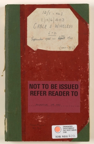 يتعلق الملف بعمليات شركة اللاسلكي والبرق المحدودة في مسقط. تشمل الأوراق ما يلي: قيام الشركة بتأسيس كابل يمر من كراتشي إلى مسقط مباشرة، ومن مسقط إلى بوشهر، وتوسعة محطة الكابلات في مسقط، ١٩٣٥ ؛ إصدار ترخيص للشركة لتضع كابلاتها في أراضي مسقط، وأن تستخدم جهاز اللاسلكي الموجود هناك، في مقابل مبلغ إيجار سنوي يُدفع مباشرة إلى سلطان ١٩٣٩ ؛ نسخة من الترخيص أصدرتها الحكومة في الهند لشركة اللاسلكي والبرق - مسقط وعُمان، ١٩٣٥ المحدودة لتضع كابلاتها في أراضي كراتشي وتصنيع كابل بحري يربط كراتشي بمسقط (الأوراق ١٠٥ )؛ انقطاعات في خدمة الكابل في مسقط؛ إقامة سواري في المحطة، ١٩٣٩ ؛ تعيين حارس في -١٠٣ المحطة، ١٩٤٠ ؛ تدابير الأمن في زمن الحرب، بما في ذلك تعليمات أصدرتها القيادة العامة بالجيش في الهند، بالتعطيل المؤقت لمحطات اللاسلكي في حال استولى عليها العدو، ١٩٤٠ ؛ ومسائل عامة. الأطراف الرئيسية للمراسلات هم الوكيل السياسي في مسقط، وشركة اللاسلكي والبرق المحدودة. يحتوي الملف أيضًا على مراسلات من السيد سعيد بن تيمور سلطان مسقط وعُمان. يتألف المحتوى العربي بالملف من سبع أوراق تقريبًا من المراسلات (مع ترجماتها الإنجليزية)، متبادلة بين سلطان مسقط وعُمان والوكيل السياسي في مسقط.
