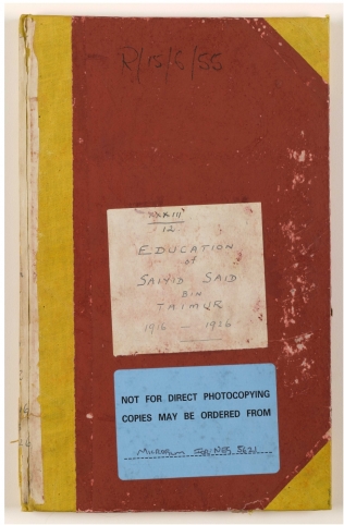 يحتوي المجلد على مراسلات في شكل رسائل وتقارير متبادلة بين المسؤولين البريطانيين في مسقط وبوشهر وشيملا، وسلطان مسقط وعُمان، تيمور بن فيصل البوسعيدي، بخصوص تعليم نجله سعيد بن تيمور، الذي وُلد في ١٠ أغسطس ١٩١٠ . في البداية، كان السلطان مُتحمسًا لفكرة استقدام مُعلّم مصري كان قد نصحه به محمد رشيد رضا، وهو مُفكّر إسلامي شهير في مصر في ذلك الوقت. ونظرًا لمعارضة المسؤولين البريطانيين للفكرة، فقد أجروا الترتيبات اللازمة لإرسال سعيد إلى كلية ١٩٢٧ . وفي سنة ١٩٢٦ ، أصرّ السلطان على إرسال نجله إلى إحدى - مايو في أجمير بالهند بين ١٩٢٢ البلدان العربية لتحسين لغته العربية. وقد قُدّمت له اقتراحات بإرساله إما إلى الجامعة الأمريكية في بيروت أو إلى إحدى المدارس في بغداد. وفي وقت لاحق، تحديدًا في سبتمبر ١٩٢٧ ، بدأ سعيد دراسته في بغداد.