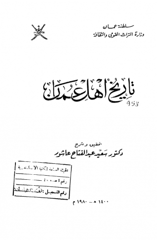 بيانات النشر : مسقط، سلطنة عمان : وزارة التراث القومي والثقافة، 1980مـ.